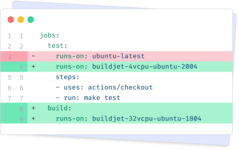 BuildJet for GitHub Actions gives you access to a secure and fast runner fleet. Simply change 1 line in your configuration file and you're ready to be more productive